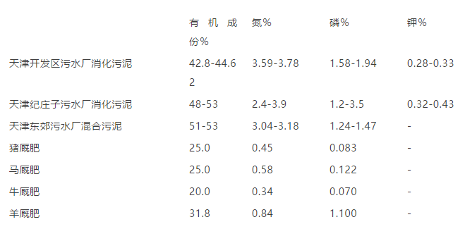 根據國內專家們的研究,污泥的肥效對比典型的農家廄肥是明顯占優的: