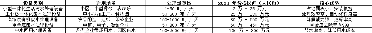 注:以上價格為 2024 年市場主流報價,不含運輸費和稅費,實際價格需根據水質報告、場地條件及定制需求調整。