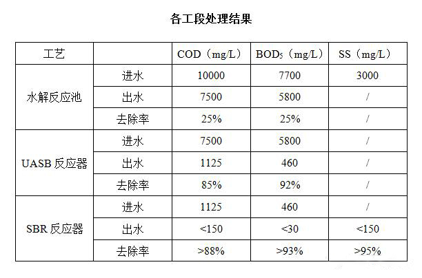 各工段處理效果具體如下表。該方案不僅處理效率高,其運行管理也方便。
